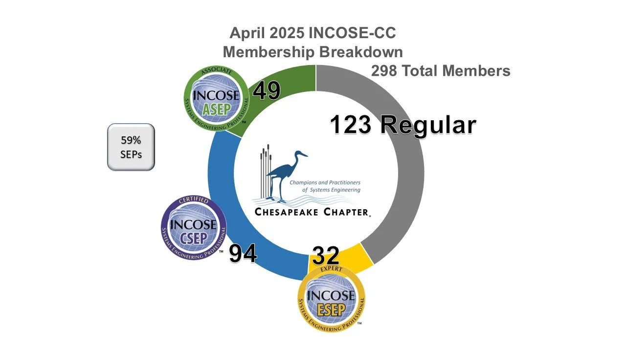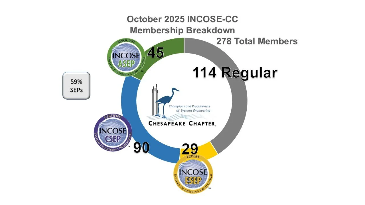 As a member you have the opportunity to network with over 25,000 practitioners in systems engineering. This includes 60+ chapters, 40+ working groups, and 4,000+ certified systems engineers.The Chesapeake Chapter serves a network of systems engineers in the Maryland area.